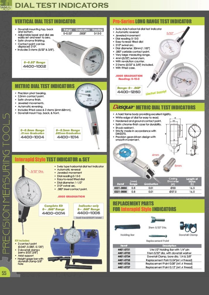 - 0-0.03″ Range .0005 Dial Test Indicator with .0005 Graduation