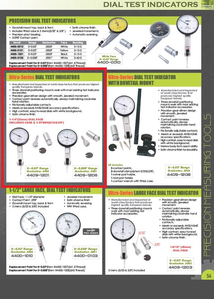 0-0.03″ RANGE .0005 DIAL TEST INDICATOR WITH .0005 GRADUATION (4409-1201) (SKU: 4409-1201)