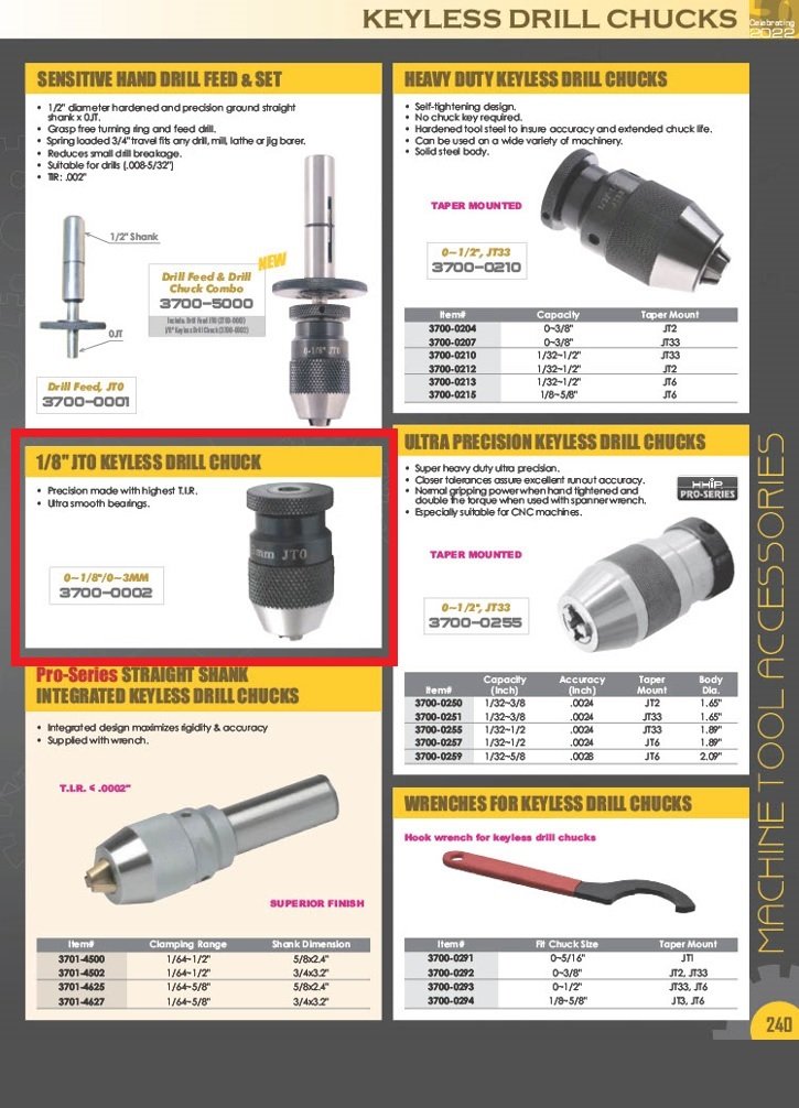 0-1/8″/0-3MM JT0 KEYLESS DRILL CHUCK (3700-0002)