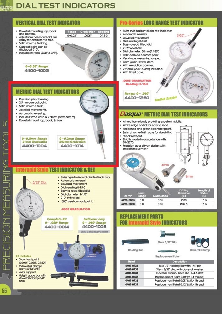 0.8MM X 0.01MM METRIC DIAL TEST INDICATOR (4400-1004) (SKU: 4400-1004)