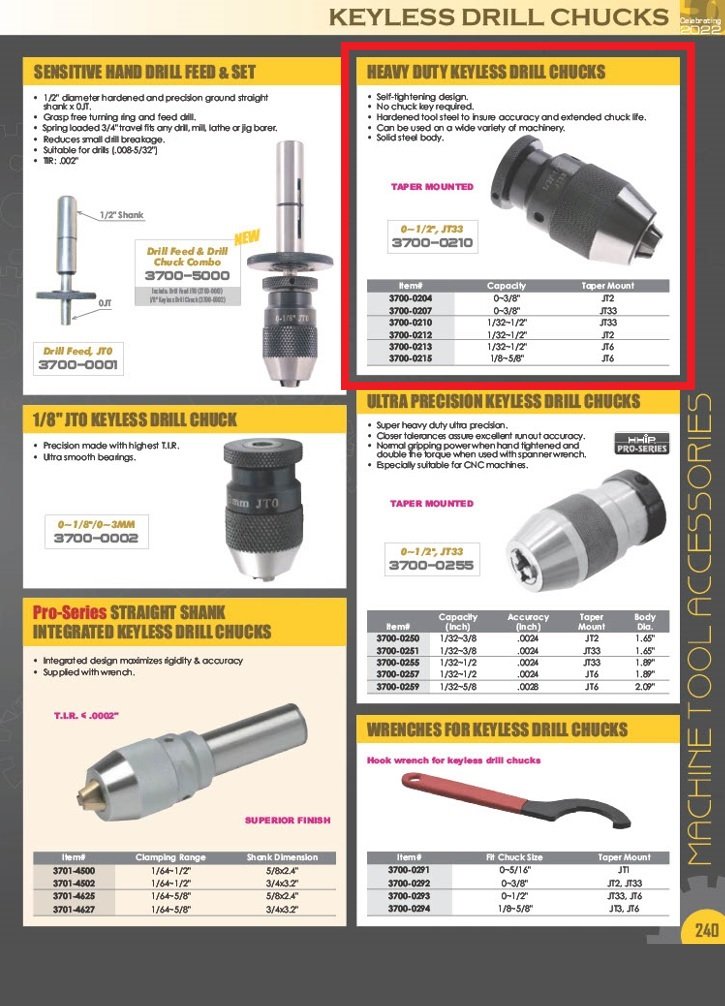 - 0-3/8″ JT33 Keyless Drill Chuck