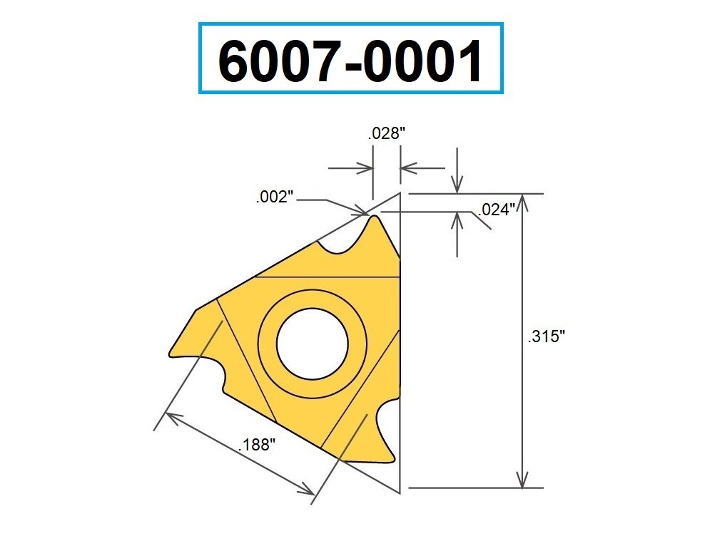 08ERA60 TiN COATED EXTERNAL THREADING CARBIDE INSERT (6007-0001) (SKU: 6007-0001)