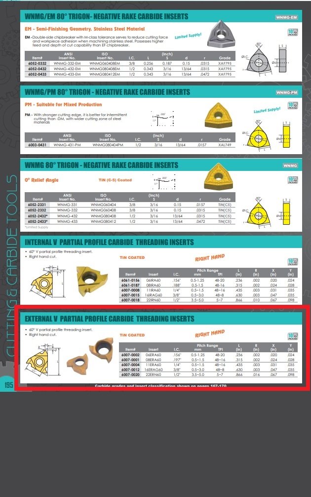 - 08ERA60 TiN Coated External Threading Carbide Insert