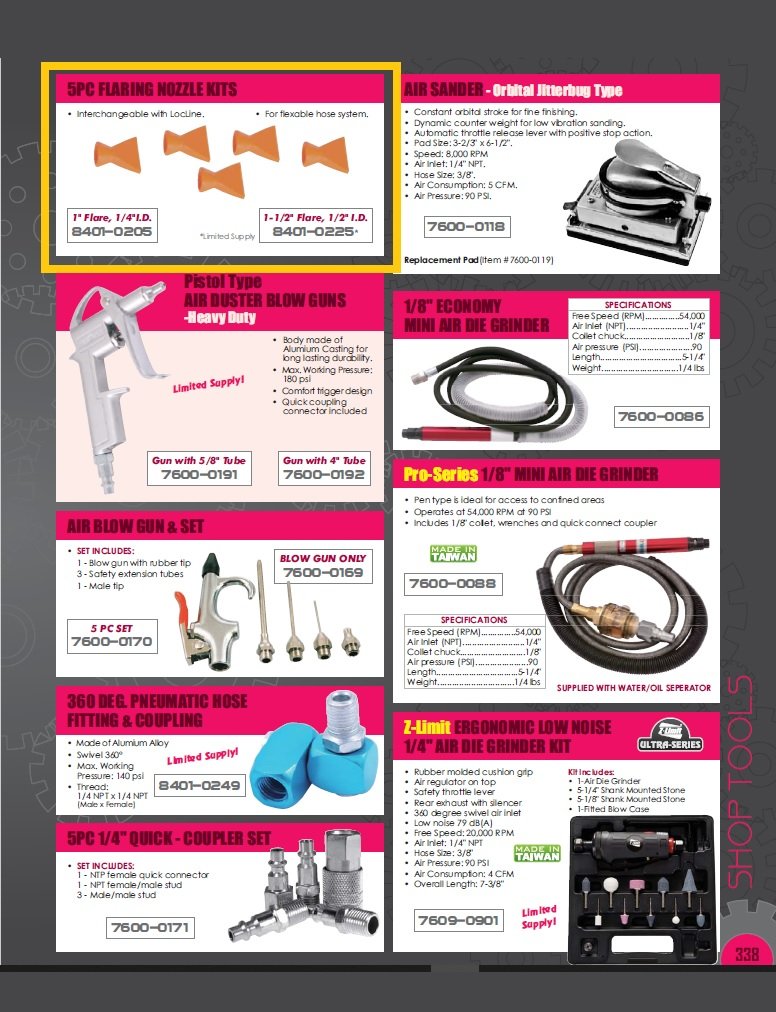 - 1-1/4″ Flare X 1/2″ ID 5 Piece Nozzle Kit