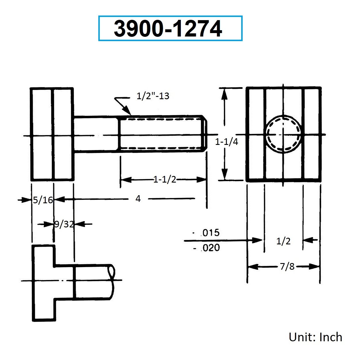 1/2-13 X 4" T-SLOT BOLT (3900-1274)1/2-13 X 4″ T-SLOT BOLT (3900-1274)