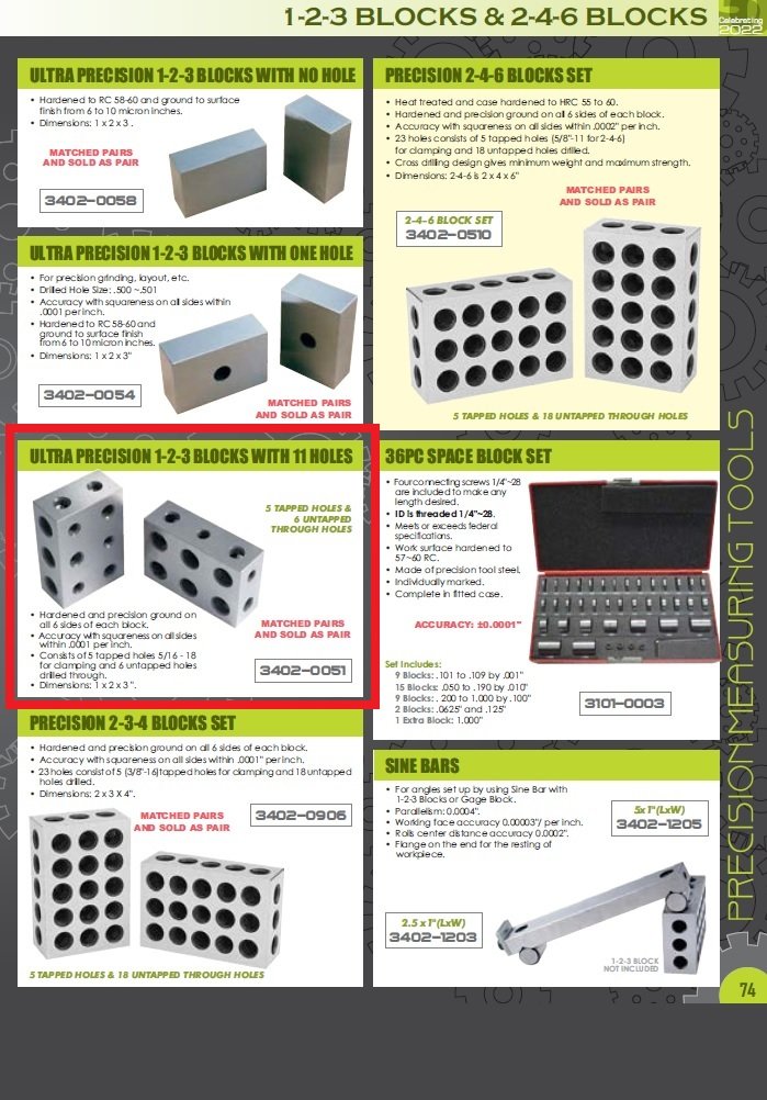 - Hardened and precision ground on all 6 sides of each block.