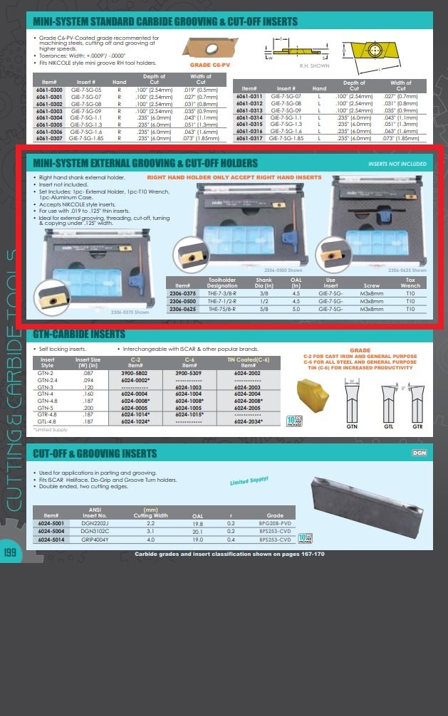 - Can be used with .019 to .125″ thin inserts