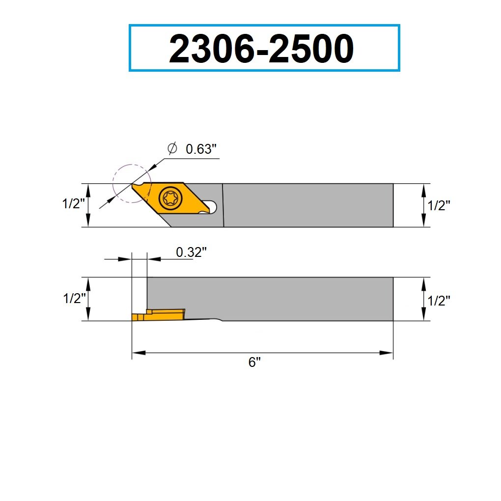 1/2″ RIGHT HAND EXTERNAL TKEHR08-16D GROOVING & CUT-OFF HOLDER (2306-2500) (SKU: 2306-2500)