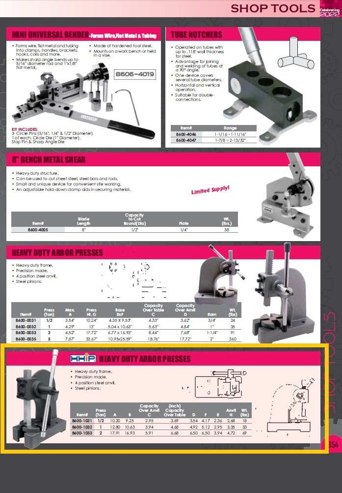 1/2 TON HEAVY DUTY ARBOR PRESS (8600-1031) (SKU: 8600-1031)
