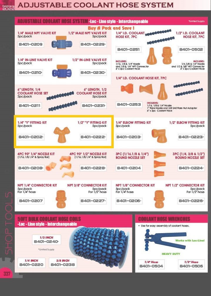 1/2 Y FITTINGS FOR COOLANT HOSE 5 PIECES COMPATIBLE WITH LOC LINE (8401-0222) (SKU: 8401-0222)