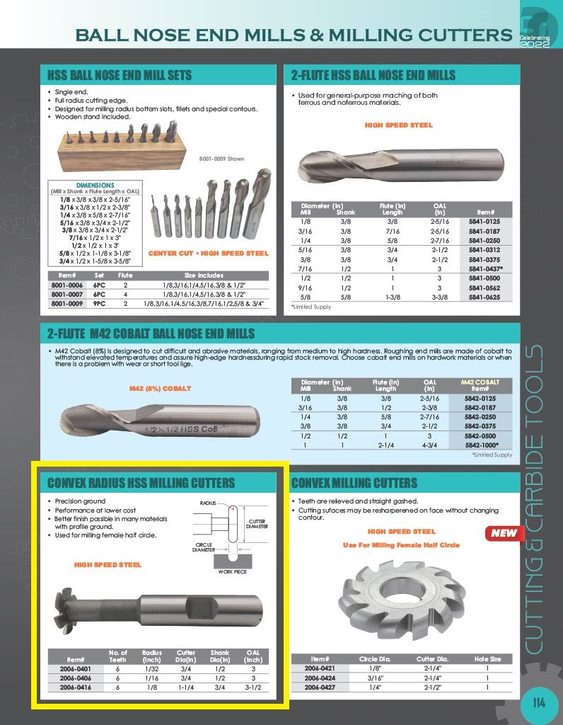 1/32 X 3/4 X 1/2 HIGH SPEED STEEL CONVEX CUTTER (2006-0401). Key features: 1/32 Radius X 3/4 Cutter Diameter X 1/2 Shank Diameter High Speed Steel Convex Cutter; Precision ground.