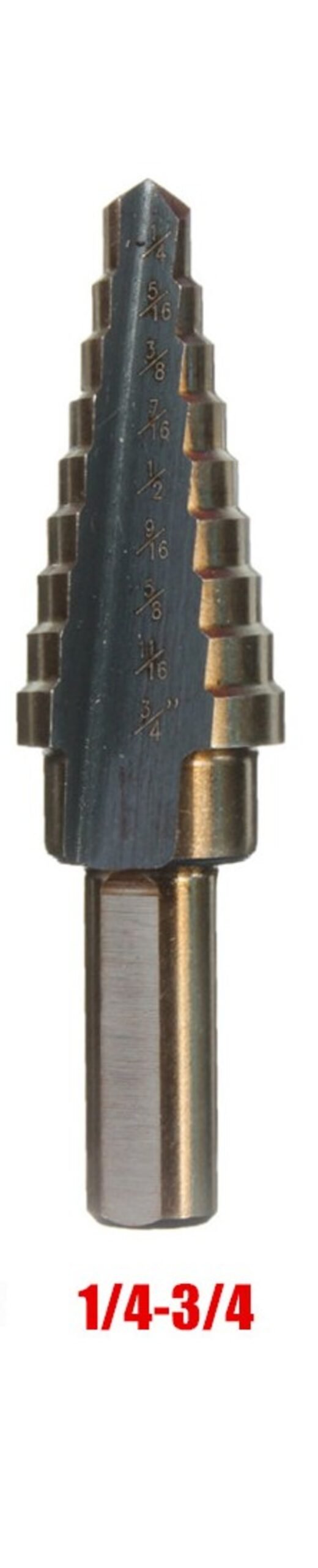 - 1/4-3/4″ High Speed Steel Step Drill with 9 Steps