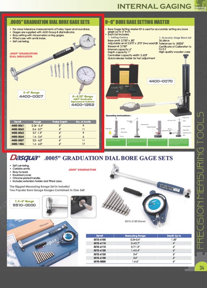 1.4 – 6″ DIAL BORE GAGE SET .0005″ (4400-1406) (SKU: 4400-1406)