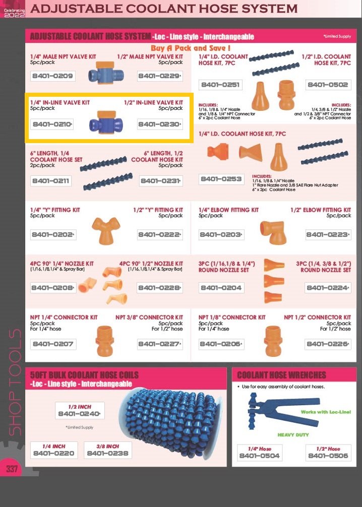 - 1/4″ Inline Valves for 1/4″ Coolant Hose