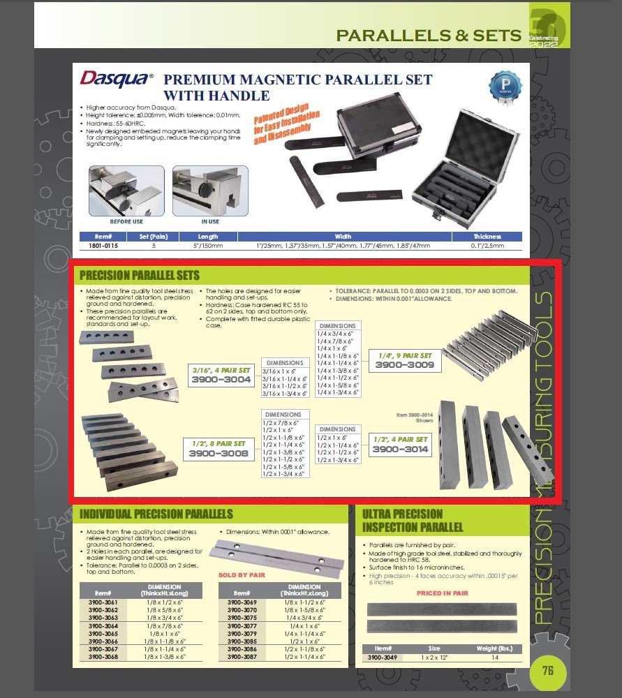 • These precision parallels are recommended for layout work, standards and set-up