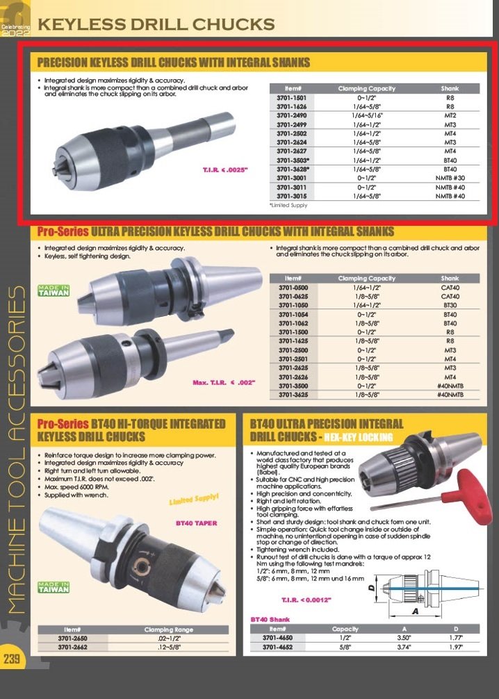 - 1/64-5/8″ Precision Keyless Drill Chuck with Integral Shank