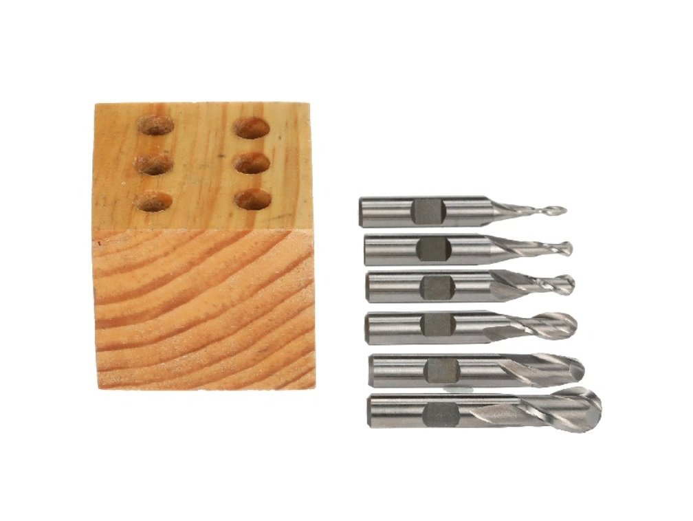 - 1/8-1/2″ 6 Piece 2-Flute M2 Ball Nose End Mill Set