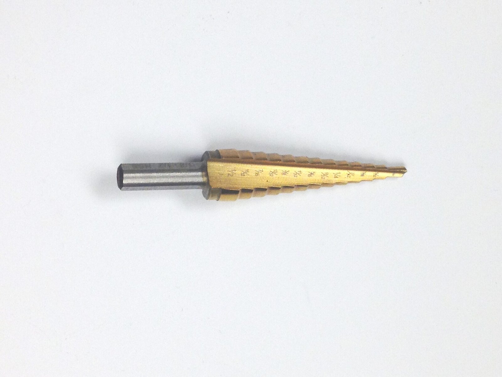 - 1/8-1/2″ TiN Coated High Speed Steel Step Drill with 13 Steps