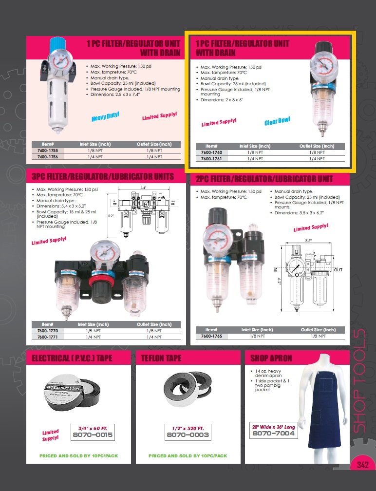 1/8 NPT INTEGRAL FILTER/REGULATOR 1 PIECE UNIT WITH DRAIN (CLEAR) (7600-1760) (SKU: 7600-1760)