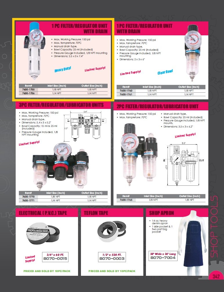 1/8 NPT INTEGRAL FILTER/REGULATOR UNIT WITH DRAIN (7600-1755) (SKU: 7600-1755)