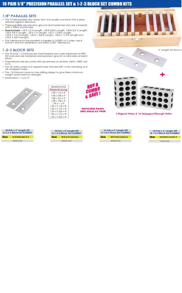 1/8 X 3″ PRECISION PARALLEL SET & 1-2-3 MATCHED PAIR BLOCK SET (9999-0031)