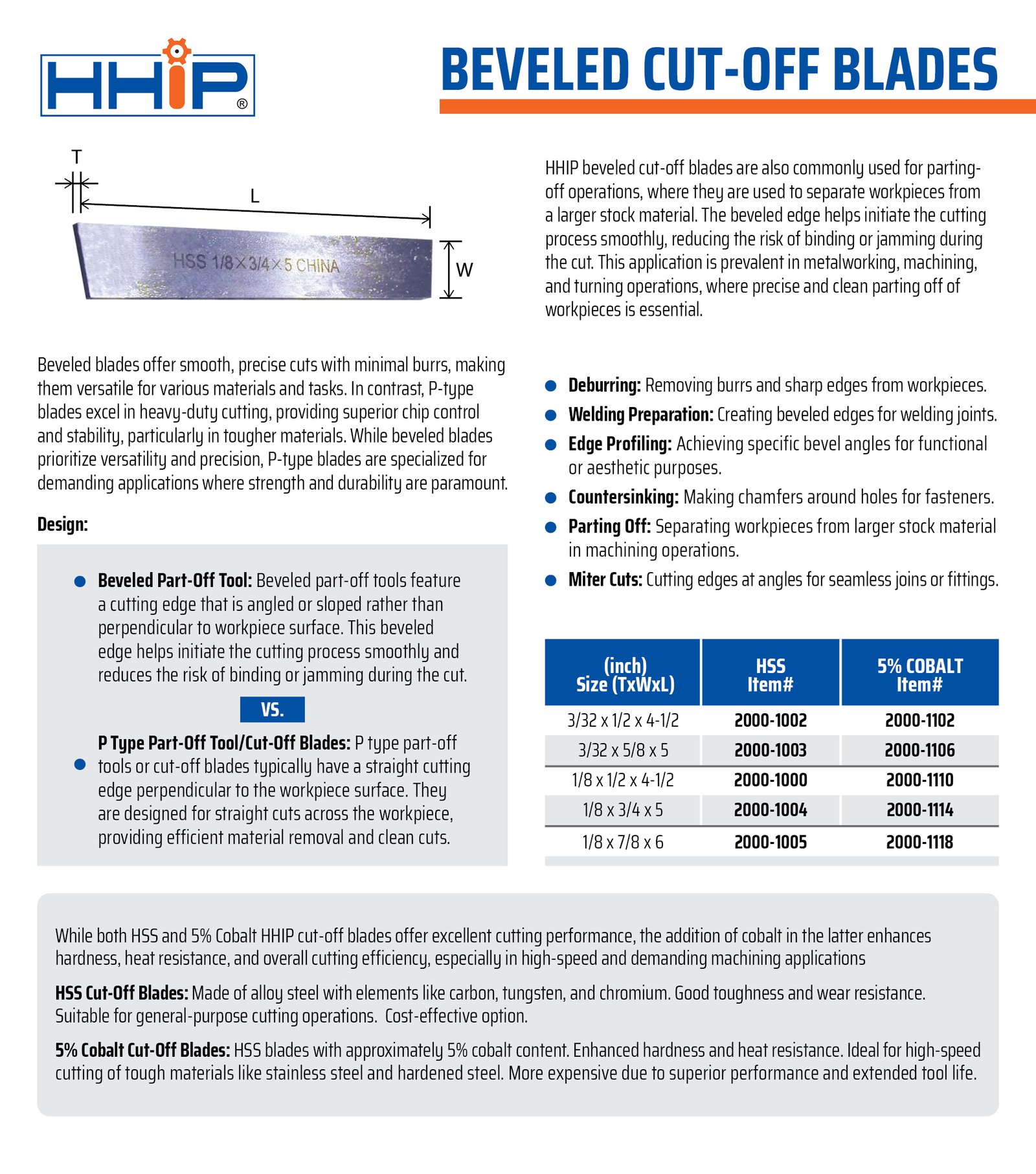 1/8 X 7/8 X 6″ HSS CUT-OFF BLADE (2000-1005). Key features: 1/8 X 7/8 X 6″ High Speed Steel Cut-Off Blade; Used with Aloris, DORIAN & KDK type quick-change tool holders..