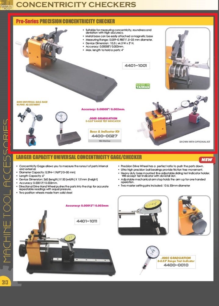 1″ DIAMETER PRECISION CONCENTRICITY CHECKER – MADE IN TAIWAN (4401-1001) (SKU: 4401-1001)