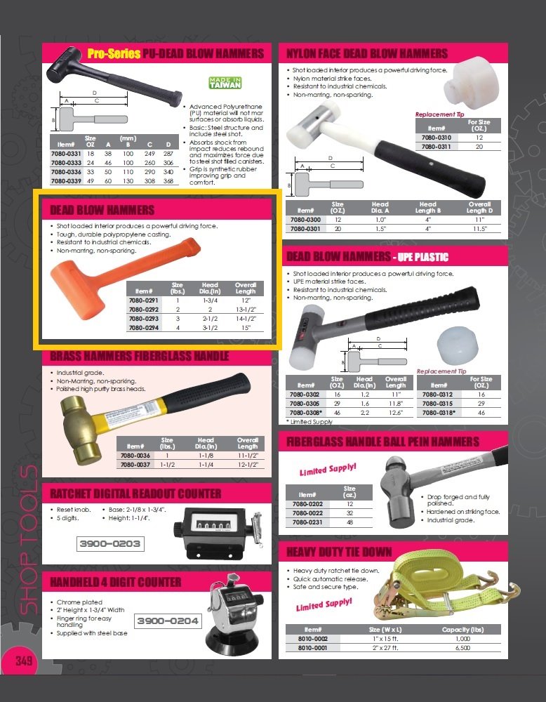 1 LB DEAD BLOW HAMMER (7080-0291). Key features: 1 lb. Dead Blow Hammer; Shot loaded interior produces a powerful driving force..