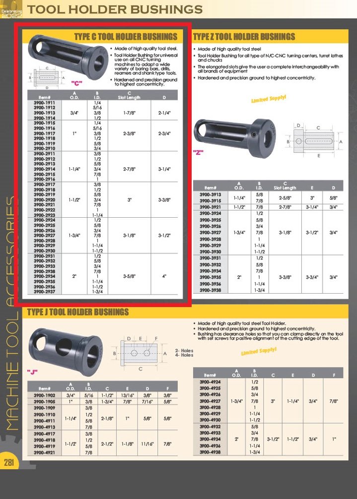 1″ OD-1/4″ ID C TYPE TOOL HOLDER BUSHING (3900-1915)