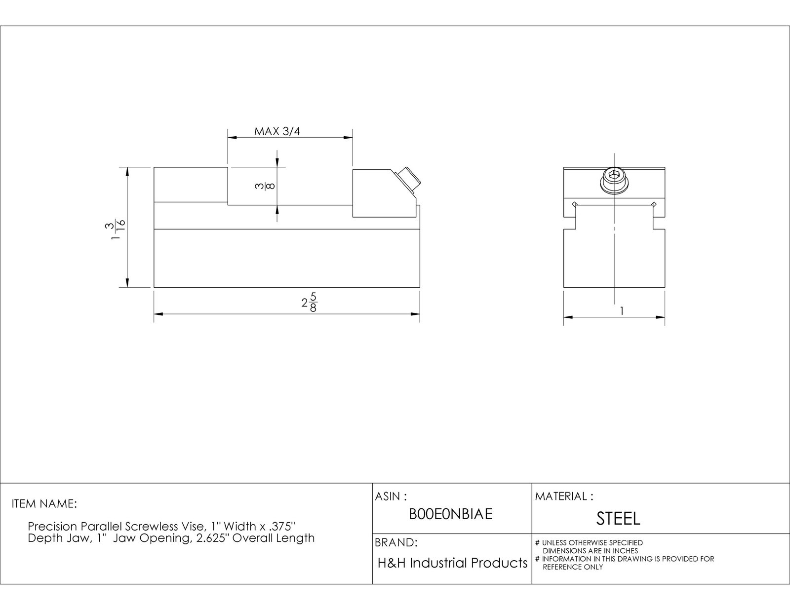 - Jaw depth is 3/8″