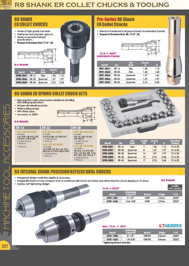 - For Bridgeport type mills.
