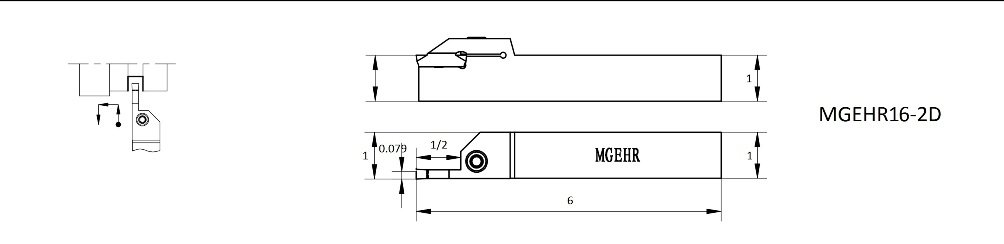 - 1 X 1 X 6″ Right Hand MEGHR16-2D External Grooving Tool Holder