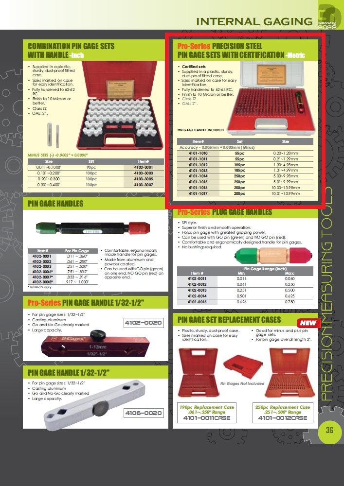 - 10.01-13.99mm (- .005) 200 Piece Pin Gage Set (4101-1017)