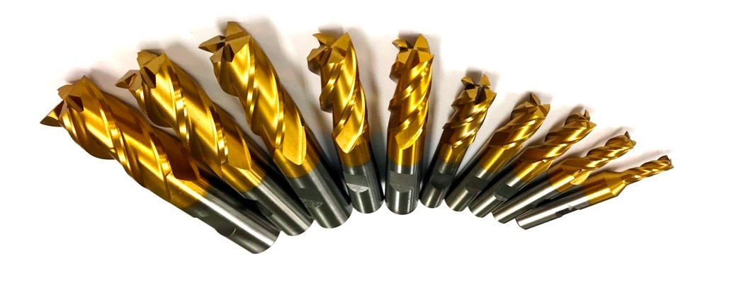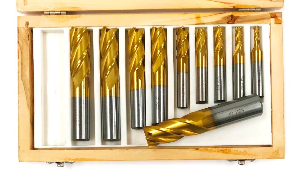 - 10 Piece 4 Flute TiN Coated End Mill Set