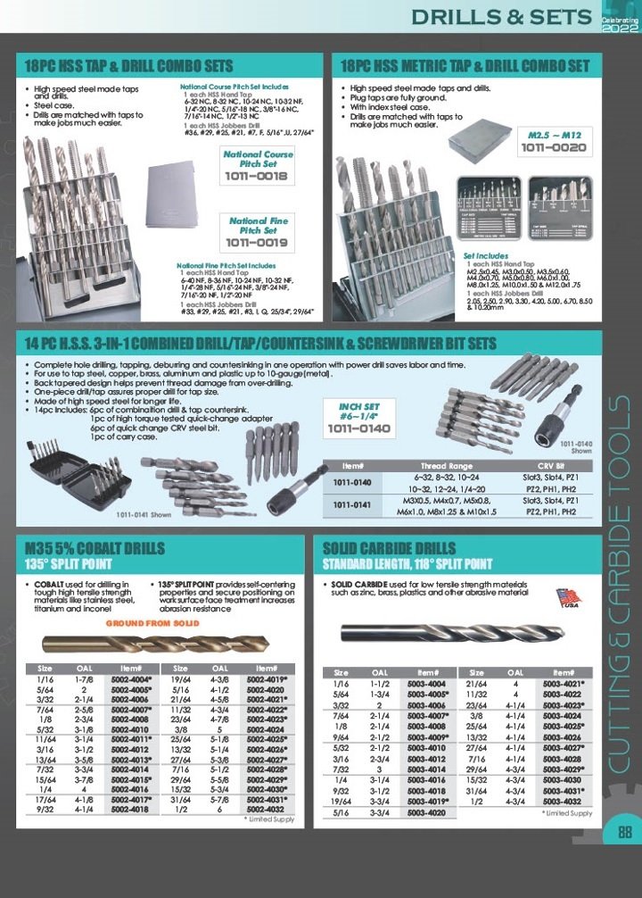 - Set includes 1/16″-1/2″ by 64ths, #1-60, and A-Z.