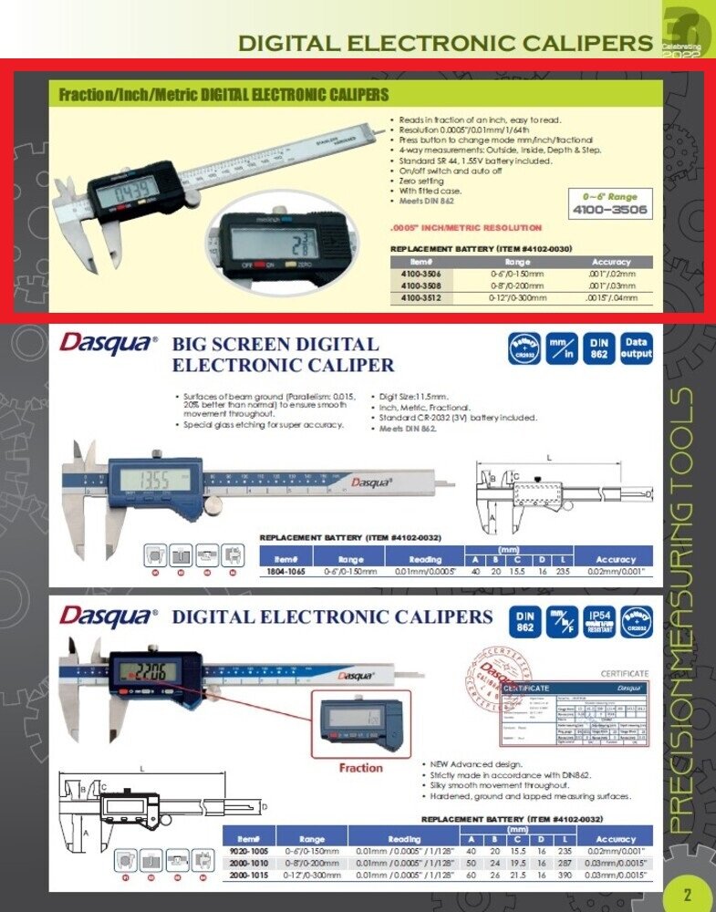 - Resolution 0.0005″/0.01mm/1/64th.
