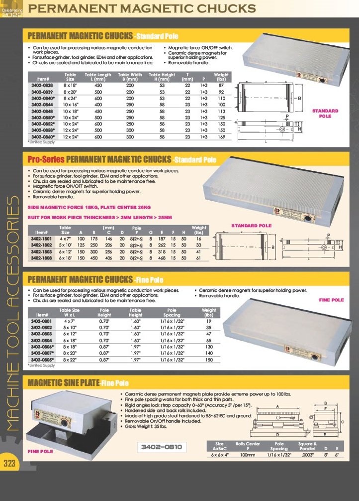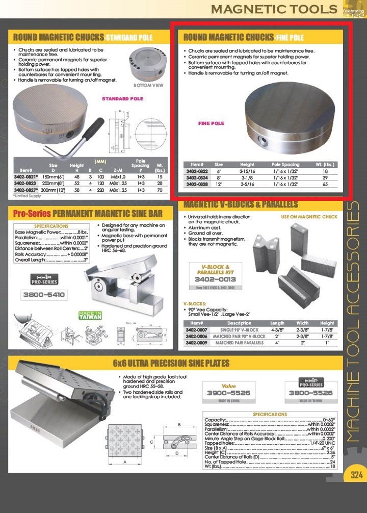 12″ FINE POLE ROUND MAGNETIC CHUCK (3402-0828). Key features: 12″ Fine Pole Round Magnetic Chuck; Chucks are sealed and lubricated to be maintenance free..