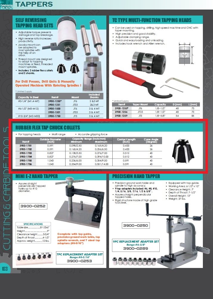 - Replacement collet for tapping heads.