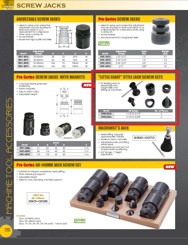 2-1/4 TO 3-3/8″ LITTLE GIANT STYLE JACK SCREW SET (3900-0266). Key features: 2-1/4 to 3-3/8″ Little Giant Style Jack Screw Set; For leveling work on planer beds and upright drills or for setting up machinery..
