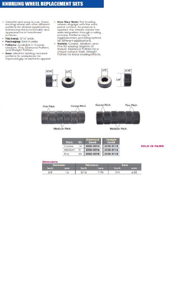 - Versatile and easy-to-use, these knurling wheel sets offer different patterns for diverse applications, enhancing the functionality and appearance of machined surfaces.
