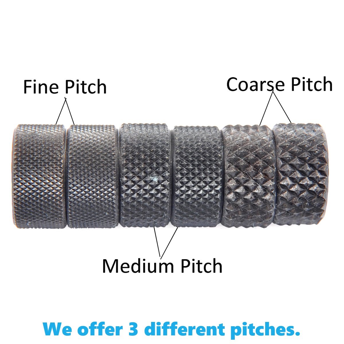 - Available in coarse, medium, or fine pitch with diamond or straight pattern.