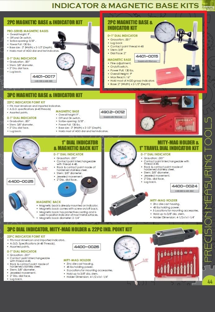 2 PIECE FINE ADJUST MAGNETIC BASE & 1″ INDICATOR SET (4401-0015)