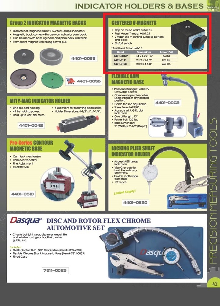 2 X 2 X 2-1/2″ CENTERED V MAGNETIC BASE (4401-0111). Key features: 2 X 2 X 2-1/2″ Centered V Magnetic Base; Grip works on round or flat surfaces..