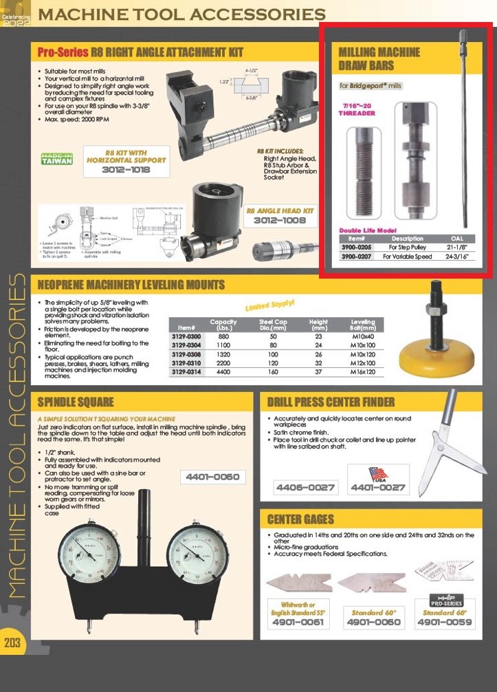21-1/8″ DRAW BAR WITH 7/16-20 THREAD FOR STEP PULLY (3900-0205). Key features: 21-1/8″ Draw Bar with 7/16-20″ Thread for Step Pully; For Bridgeport Milling Machines..