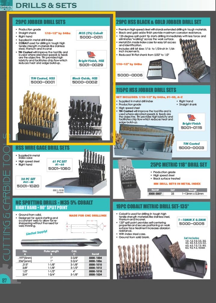 29 PIECE M35 COBALT DRILL SET (1/16-1/2 INCH BY 64THS) (SKU: 5000-0011)