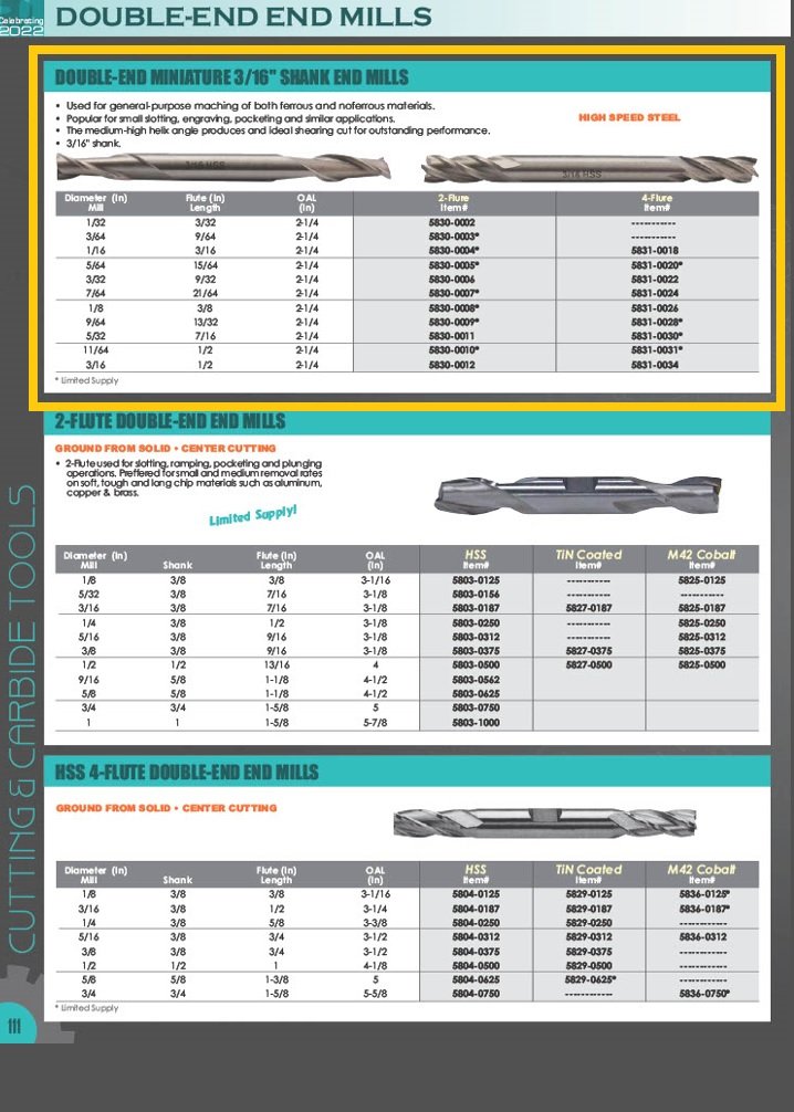- 3/32″ 2 Flute Miniature High Speed Steel Double End End Mill