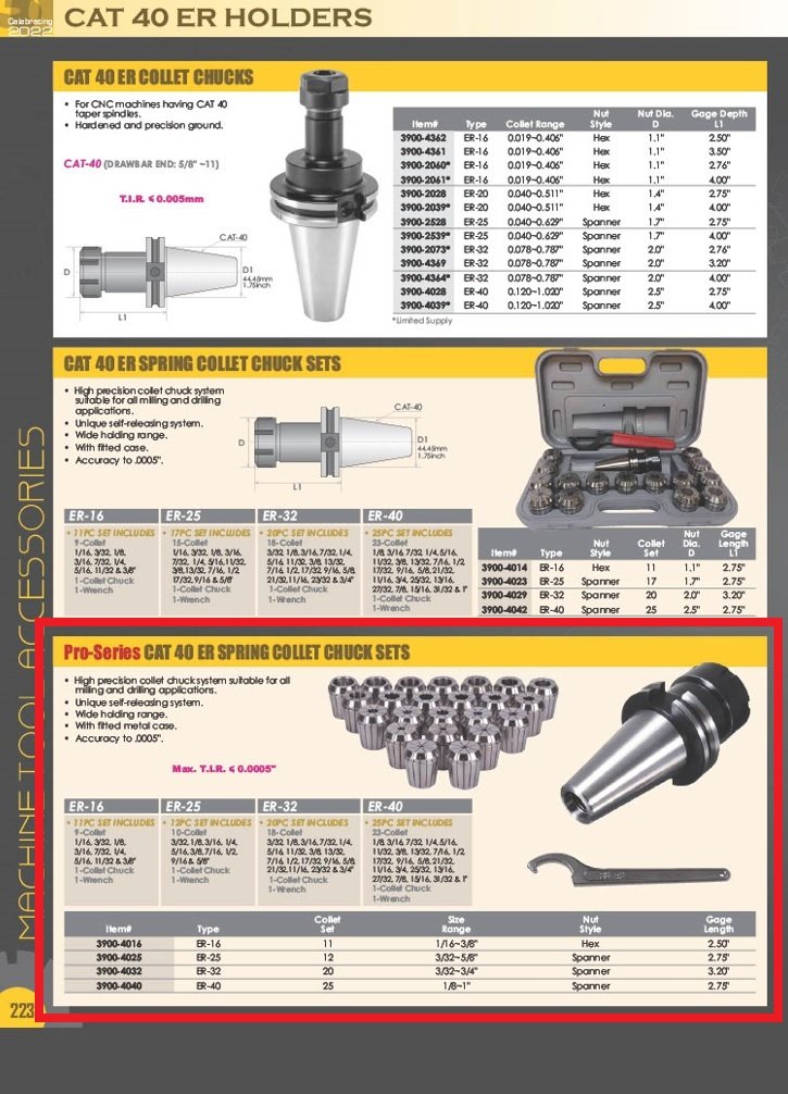 ER-32 CAT 40 V-FLANGE SPRING COLLET CHUCK SET-METAL CASE (SKU: 3900-4032)