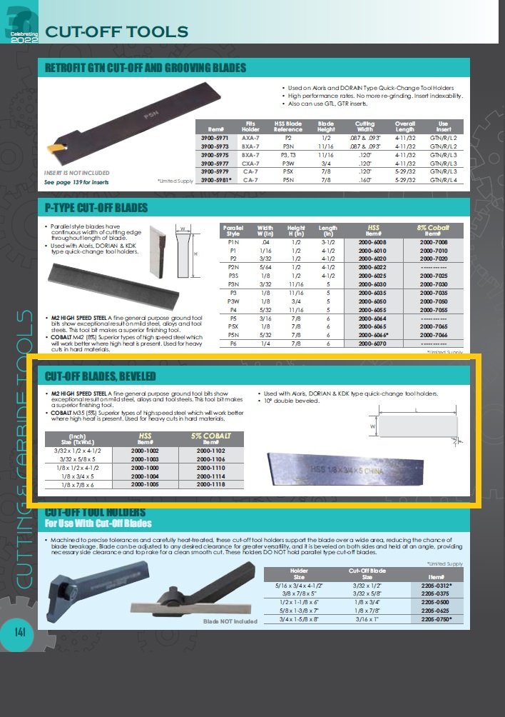 - Used with Aloris, DORIAN & KDK type quick-change tool holders.
