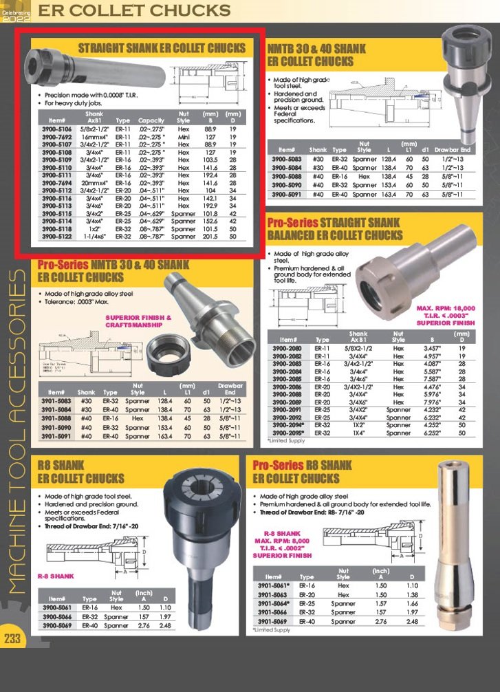- 3/4 X 2 1/2″ ER-20 Collet Straight Shank