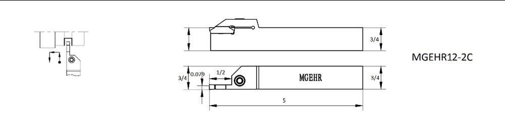 3/4 X 3/4 X 5″ RIGHT HAND MGEHR12-2C EXTERNAL GROOVING TOOL HOLDER (2207-0750) (SKU: 2207-0750)